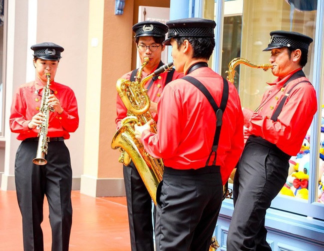 東京ディズニーランドのワールドバザールで演奏しているサックスフォーのテ Yahoo 知恵袋